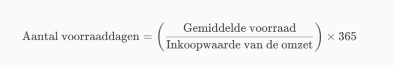 - Voorraaddagen = (Gemiddelde voorraad / Kostprijs van de omzet) × 365