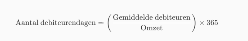 - Debiteurendagen = (Gemiddelde debiteuren / Omzet) × 365